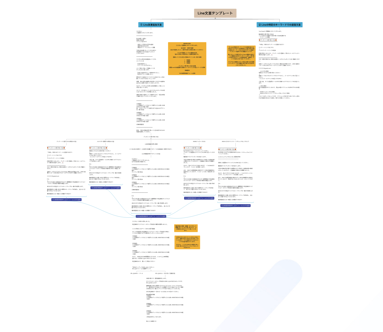 特典記事の中にはLine公式で使えるLine文言テンプレートや個別相談までの導線設計を可視化したマインドマップも配布しています。(コピペ可)