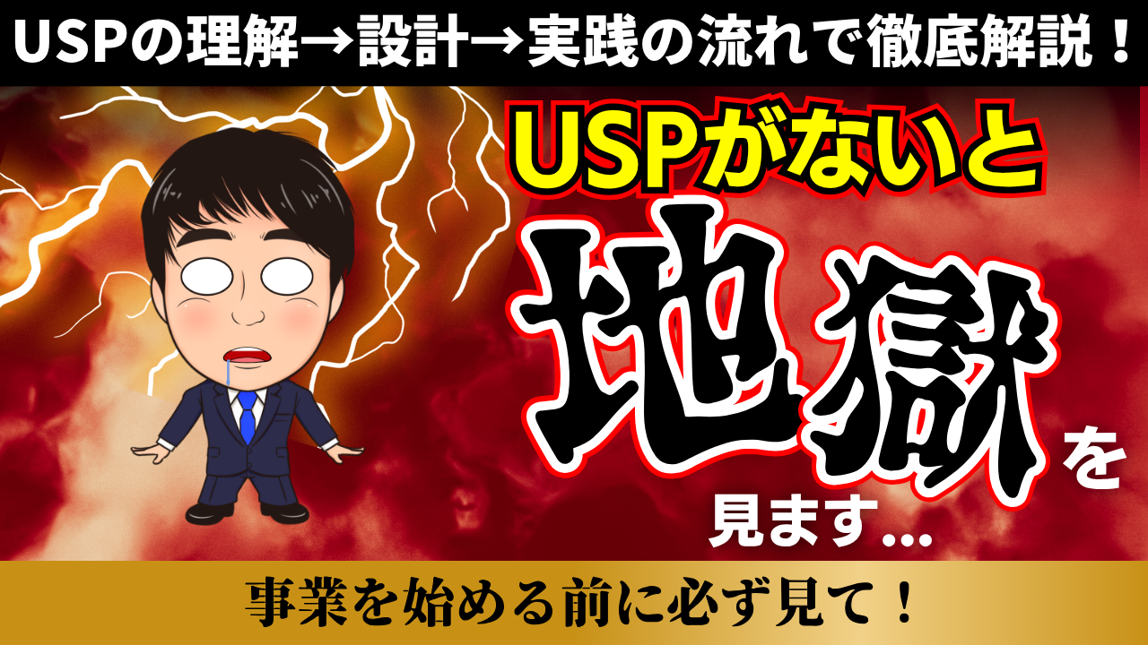 【知らないとヤバイ】USPとは|競合に勝つための差別化戦略&効果的な作り方5ステップのYouTube動画で紹介した、USP設計ワークシートです。